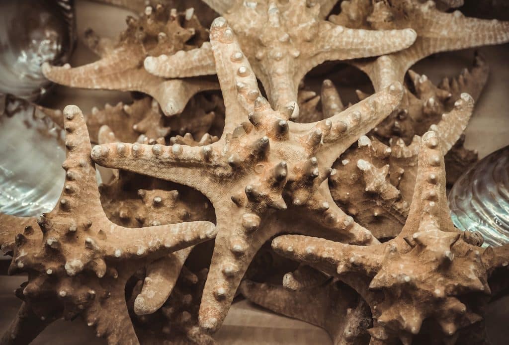 The Red Knobbed Starfish looks similar to the Chocolate Chip starfish. This species is white with red stripes. This variety’s spikes are darker than brown. Although this breed is rare than Chocolate Chip, it is still very affordable and can grow up to 12 inches in size. Due to its appetite, it would be a good idea not to keep this breed in a tank.